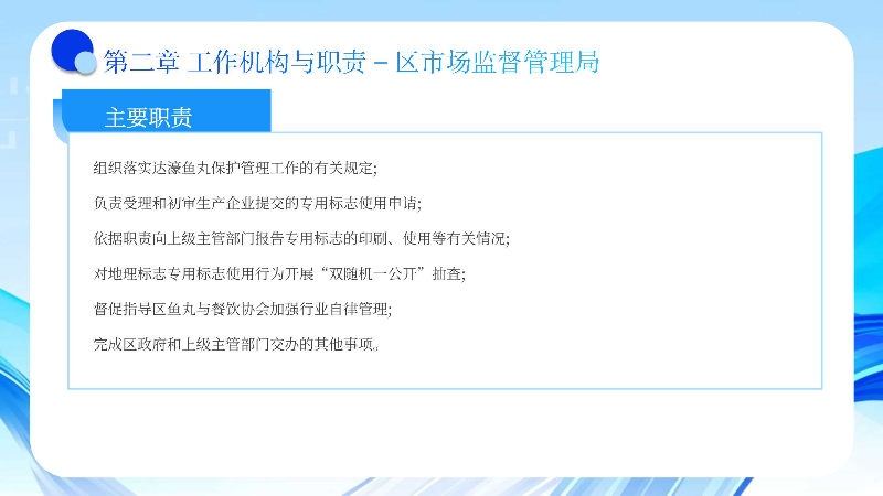 1.组织落实达濠鱼丸保护管理工作的有关规定;