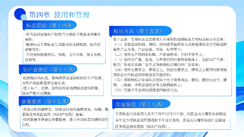 5.将地理标志专用标志使用于电子商务网站、微信、微信公众号、微博、二维码、手机应用程序等互联网载体上;