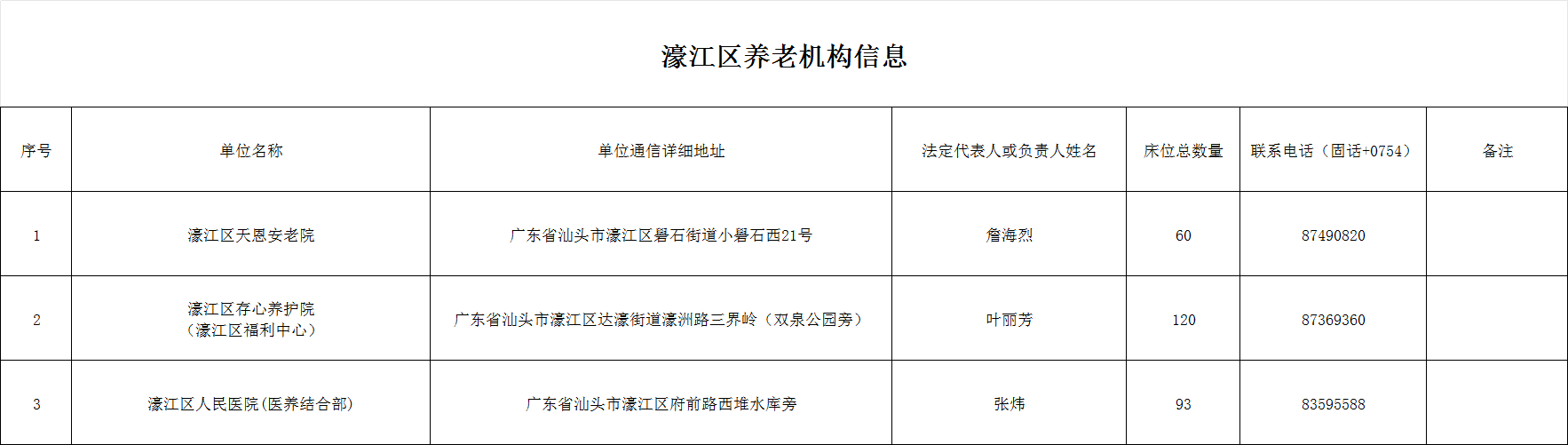 濠江区养老机构信息
