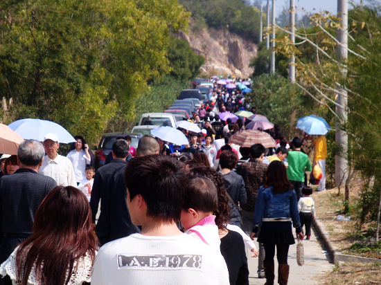2011年第三届汕头市濠江桃花节2月20日开幕以来,在社会上引起了广泛的关注,反映强烈。近日正值桃花最佳赏花期,巨峰旅游景区内近万棵桃花在暖风中全面绽放,美不胜收,前来濠江踏青赏桃的游客络绎不绝。据统计,2月27日星期日当天,前来赏桃的市内外游客突破4万人次,创造了汕头旅游景区单日接待量的新记录。其中有粤东地区几十家旅行社组团前来的游客,也有一些选择自驾车而来。景区内游人如织,人头攒动,濠江各酒楼热闹非凡,场面十分火爆,直接带动了交通、餐饮等服务业的发展。