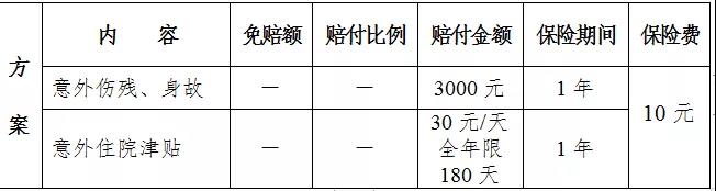 2、意外住院津贴:每天30元(每次住院津贴补助以90天为限,全年以180天为限)。