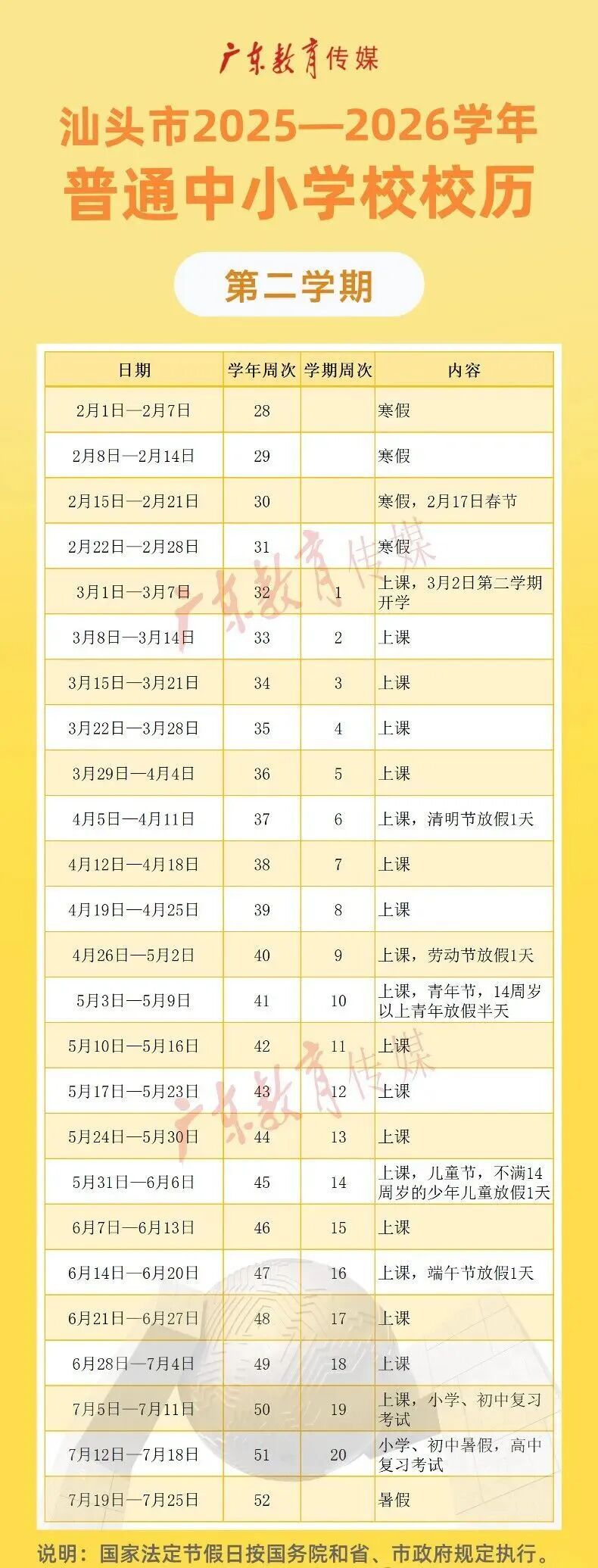 汕头市中小学春季学期开学安排