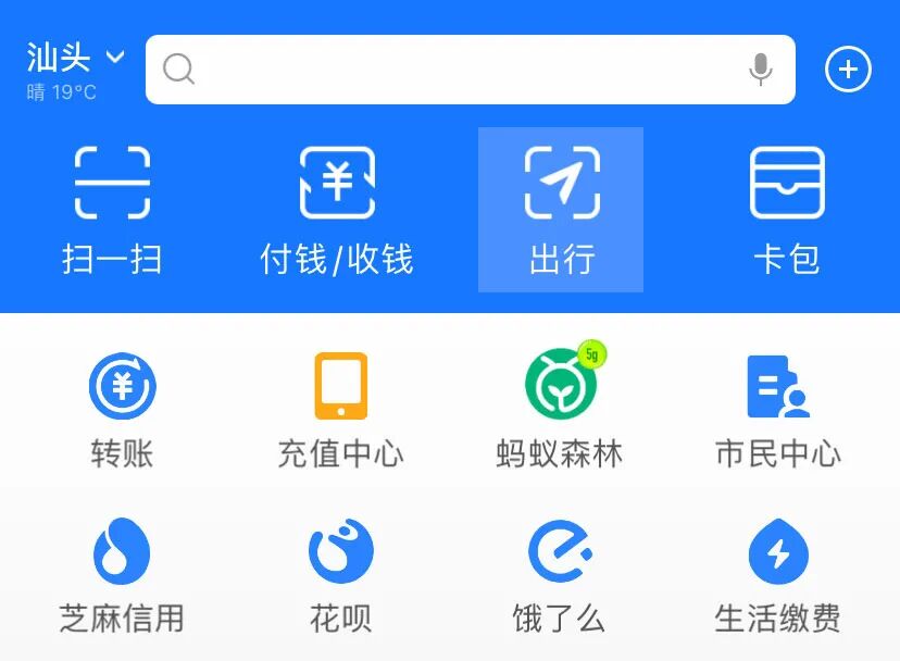 ● 已领取“汕头电子公交卡”的乘客如需使用支付宝扫码乘车,只需在支付宝首页点击“出行”,刷码就能乘车。