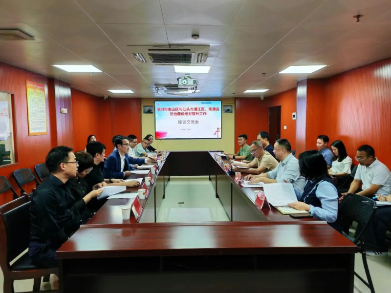 为深学笃行习近平法治思想,认真落实《广东省各地级以上市党委全面依法治市委员会办公室结对提升工作方案》部署要求,促进基层法治能力提升,深圳市南山区、汕头市濠江区协同开展法治建设结对提升活动,深入推动法治建设领域交流互动,形成共建共享、互促互进的良好局面。