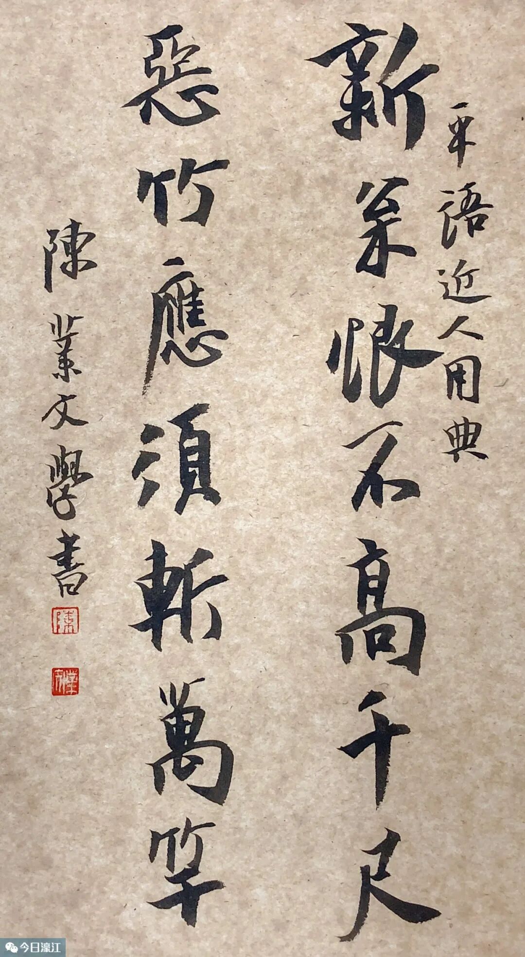 书法家简介 陈业文,濠江区首批优秀拔尖人才,3次荣获市文艺“精品奖”,系中国书法家协会书法考级考官、中国书法家协会会员、汕头市书法家协会副主席、濠江区书法协会主席。作品曾入展由中国书法家协会主办的全国“林散之奖”、青年展、册页展、大字展、新人展和荣宝斋全国展等,曾获广东省书法最高奖“南雅奖”银奖、“群艺奖”铜奖,并入展十余次。多次参与、策划全市性书法大展和比赛。