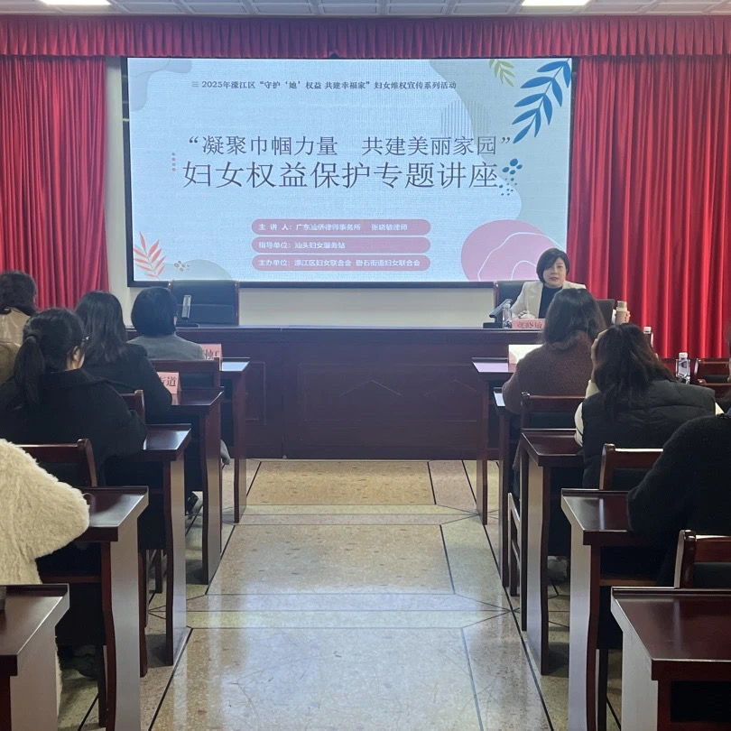 春风拂面暖人心,巾帼普法入人心。礐石街道妇联于2月28日联合汕头妇女服务站、濠江区妇女联合会举办妇女权益保护专题讲座,本次讲座邀请广东汕侨律师事务所主任、党支部书记张晓敏律师为大家讲解《中华人民共和国妇女权益保障法》《中华人民共和国婚姻法》等相关法律法规。