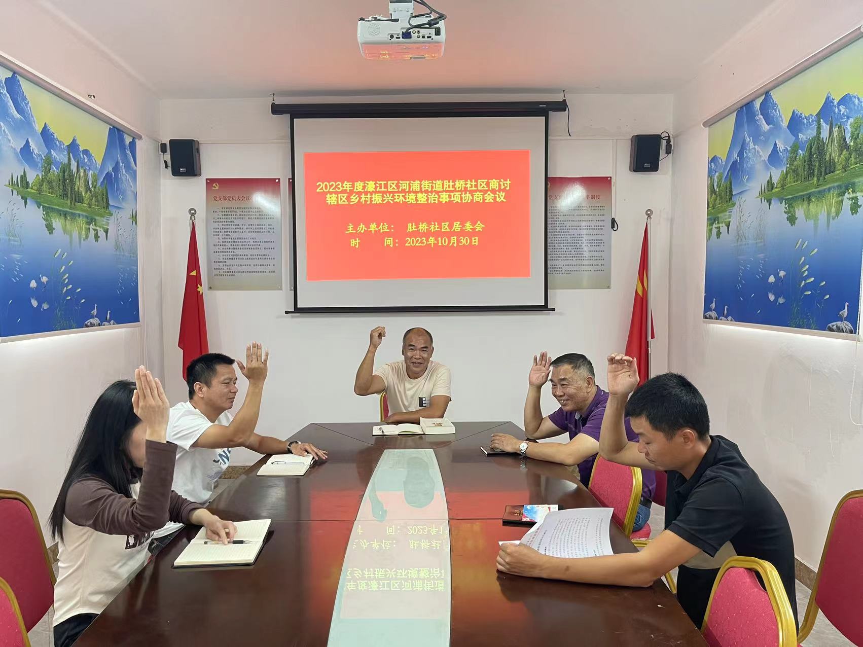近期,根据社区居民反映居民区及公共活动场所环境卫生存在的问题,为切实做好社区乡村振兴持续环境清理整治工作,更好的营造一个干净、舒适的社区生活环境,10月30日,肚桥社区召开民主协商会议,共同商讨社区环境整治事项问题,社区党支部、居委会成员、部分居务监督委员会成员及居民代表参加会议。