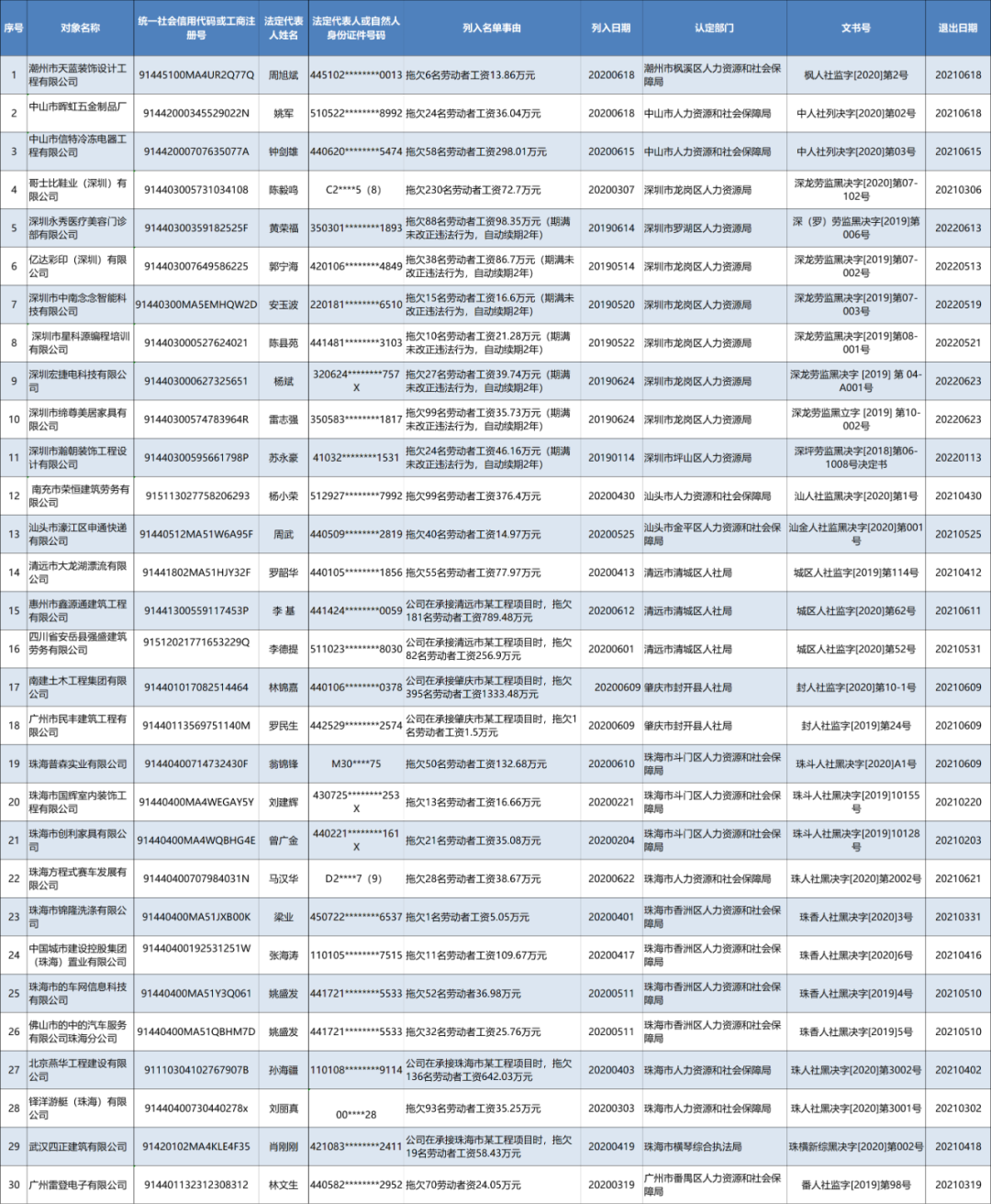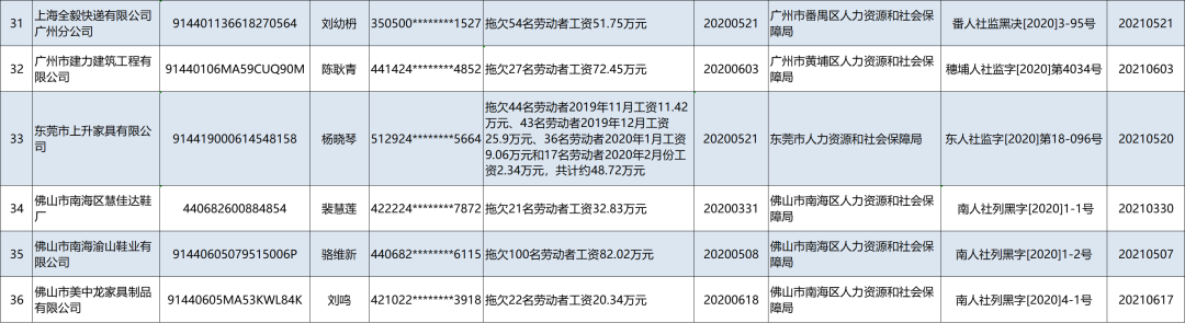 | 名称: | 36家公司及其老板被曝光!广东省2020年第三批欠薪“黑名单”公布 | ||
