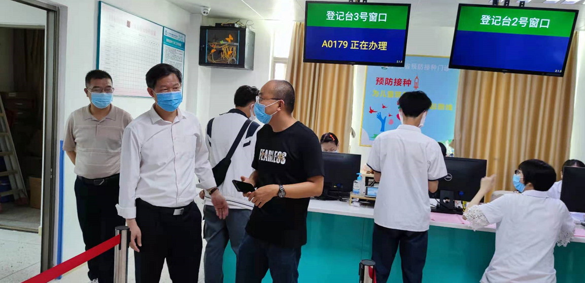 为切实推进各新冠病毒疫苗接种点工作顺利开展,确保普通人群科学规范安全接种疫苗,5月8日上午,濠江区卫生健康局长揭立业到广澳街道社区卫生服务中心督导检查新冠疫苗接种工作。在现场,揭立业局长详细查看了接种门诊设置情况,询问了接种流程,询问日接种量和当前接种工作进度,向前来接种的群众了解新冠疫苗接种意向和接种后的身体状况。揭局长要求,接种点工作人员要规范疫苗接种程序,落实“三查七对一验证”措施,认真仔细地询问接种人员的过敏史和疾病史,测量血压,告知注意事项,确保广大群众能够安全接种新冠病毒疫苗。