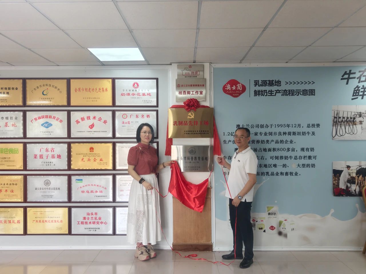 澳士兰“乳制品先锋工场”是依托玉新街道燎原社区党总支部和广东澳士兰乳业生态科技有限公司结对共建,推动企业产业链、技术与社区资产资源深度衔接,实现村企供需有效匹配、携手共赢发展的有效探索。