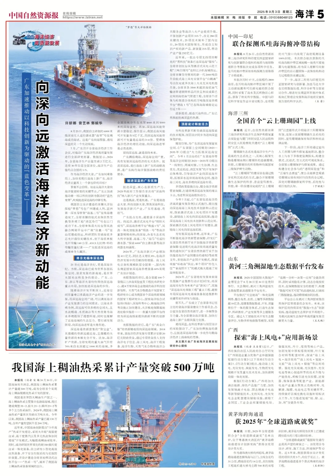 这是挑战,更是机遇。广东是制造业大省、科技创新大省,聚焦深海科技,发展海洋新兴产业,广东有基础、有底气。