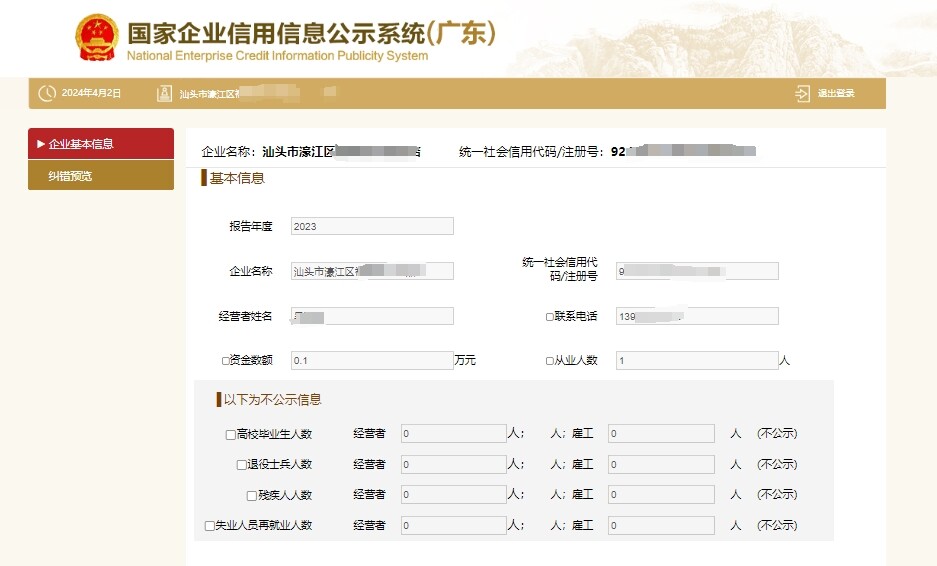 5、填报完成后可预览填报内容,随后点击“提交并公示”即可完成年报公示工作。