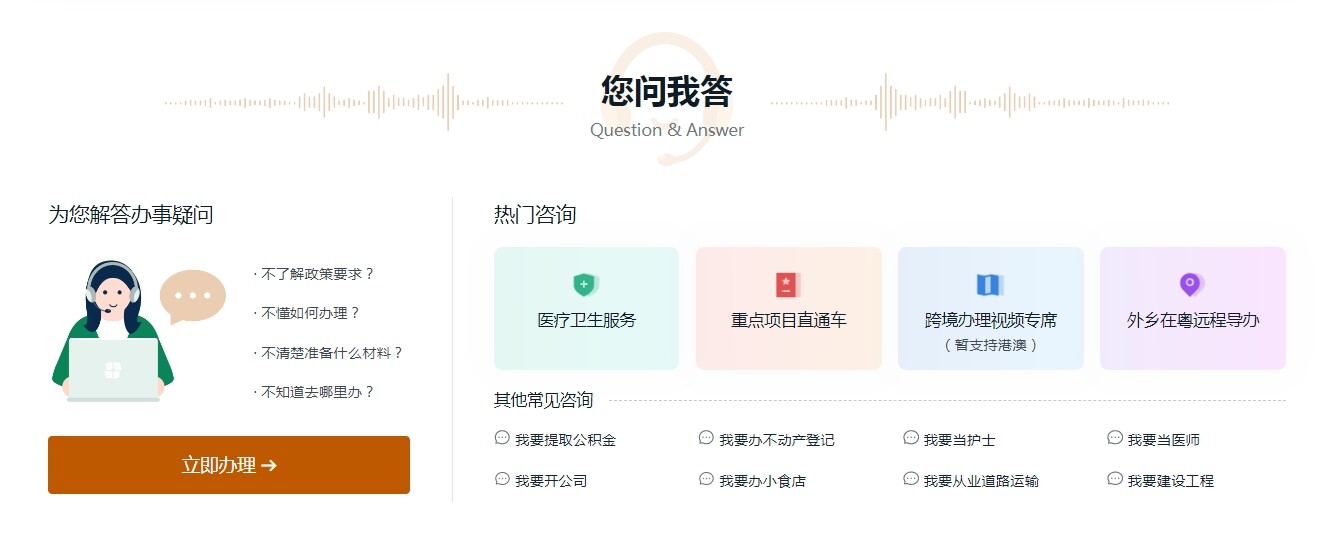 二、登录广东政务服务网账号(可微信扫码人脸识别登录),登录后,点击“立即办理”。